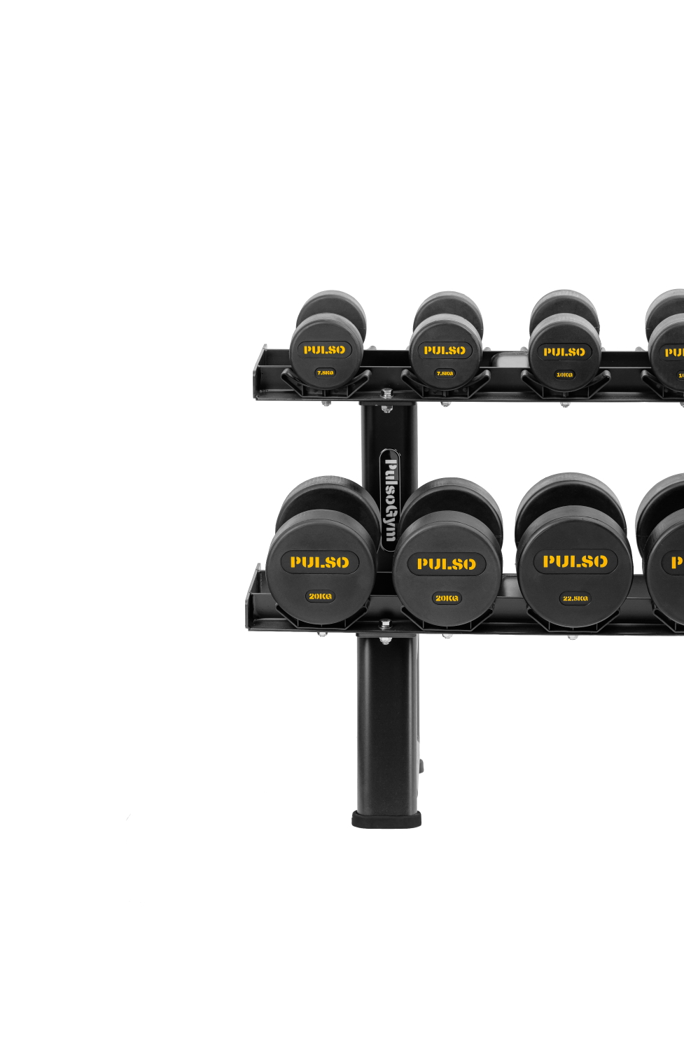 Qantel dəstinə daxildir: 2x5kq, 2x7.5kq, 2x10kq, 2x12.5kq, 2x15kq, 2x17.5kq, 2x20kq, 2x22.5kq, 2x25kq, 2x30kq PulsoGym RAD seriya 10 cüt rezin örtüklü qantellər və PulsoGym BT32 qantel rəfi. Qantellərin toplam çəkisi: 330 kq, Qantel rəfinin ölçüləri: 2095×520×790mm, Qantel rəfinin materialı: Oval metal profil